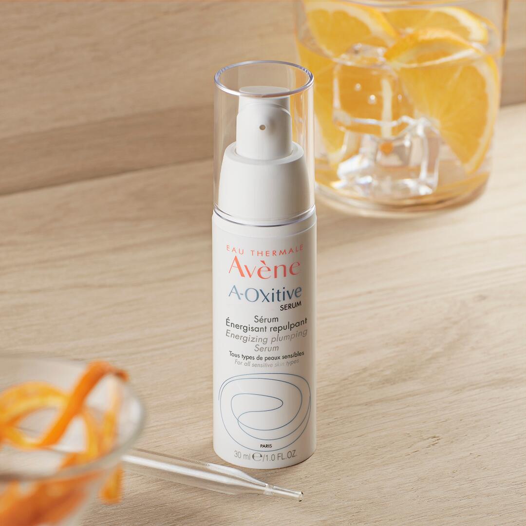 Por la noche, extender una cantidad del tamaño de un guisante deA-Oxitive contorno de ojos alisador en la punta del dedo anular y aplicar alrededor de los ojos. Extender en las cejas, dando suaves golpecitos sobre el párpado inferior.